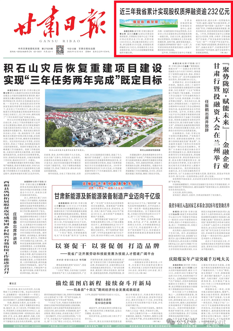 (新甘肃客户端兰州讯(新甘肃·甘肃日报记者曹立萍 通讯员高婧)记者从江南官方网站获悉,甘肃股权交易中心近三年累计登记托管企业1751家,托管市值1320.66亿元,登记撮合股权转让1270笔,涉及股数25.03亿股,实现股权质押融资232.72亿元,有效激活非上市企业股权价值,为中小企业破解融资难题提供关键支撑。