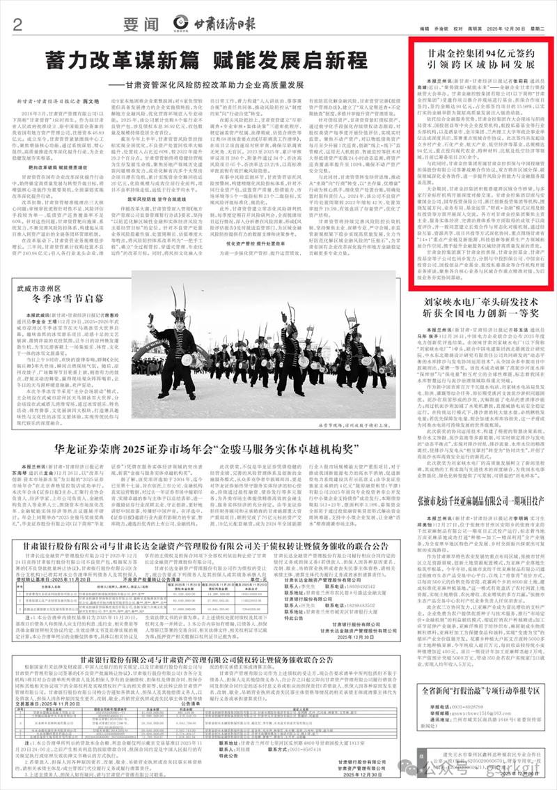 与此同时,江南官方网站所属甘肃金控担保与中国投融资担保股份有限公司签署战略合作协议,双方将在区域分保、联保领域深化业务协作,进一步提升风险分担能力与金融服务覆盖范围。