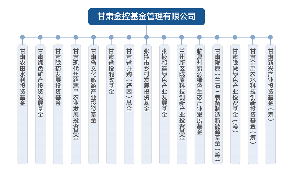 目前,管理运营甘肃农田水利投资基金、甘肃绿色矿产投资发展基金、甘肃陇药发展投资基金、甘肃现代丝路寒早农业发展投资基金、甘肃省文化旅游产业投资基金、甘肃省投混改基金、甘肃省并购(纾困)基金、张掖市乡村发展投资基金、张掖祁连绿色产业发展基金、兰州新区陇原科技创新产业投资基金、临夏州聚源绿色生态产业发展基金共计11支基金,基金投资业务开展稳健有序。